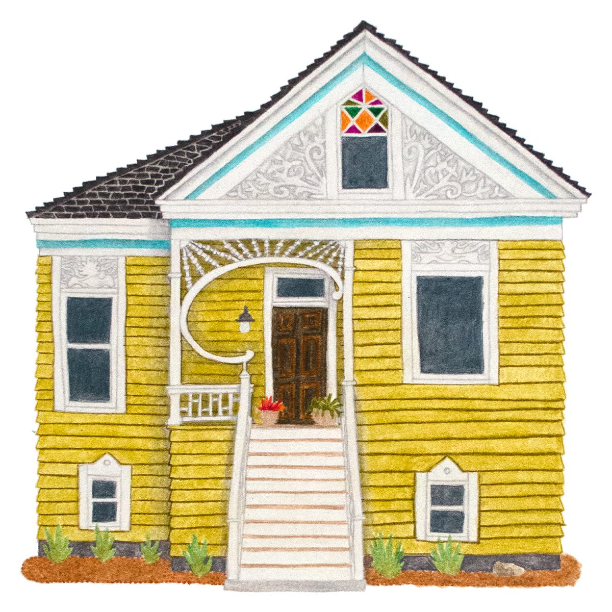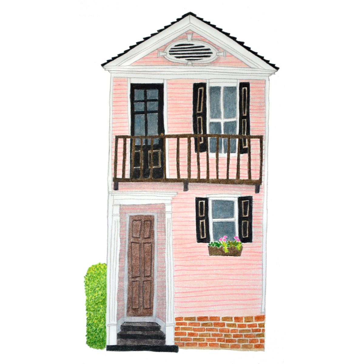 She creates her signature custom portraits that capture the personality of every home, cottage, and oyster bar. Her work celebrates the little quirks and details that make each place unique, with playful textures, charmingly irregular lines, and bold colors. Alena has been creating portraits since 2016, and her work has been featured in Real Simple Magazine, Apartment Therapy, Southern Living Magazine, and Etsy.